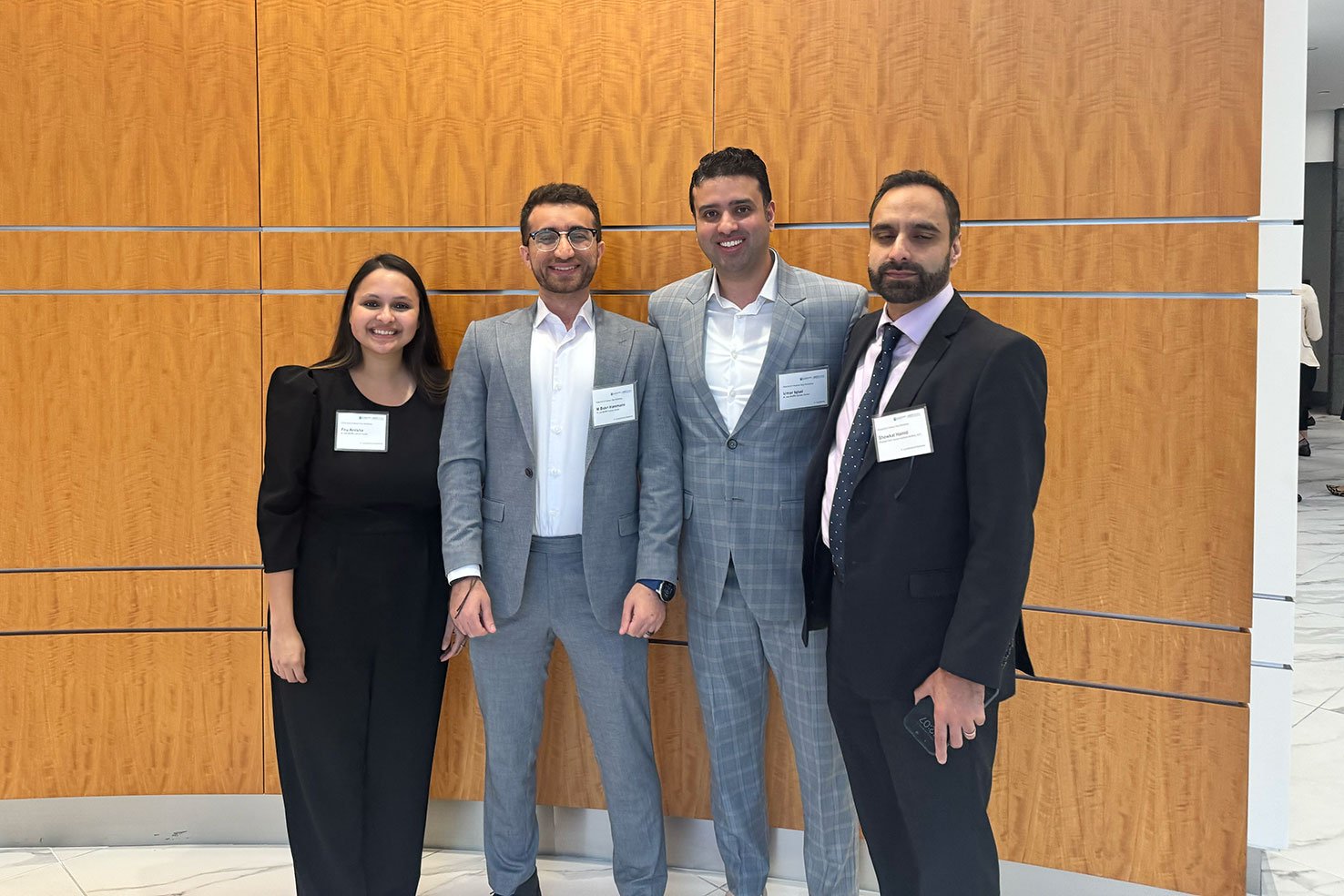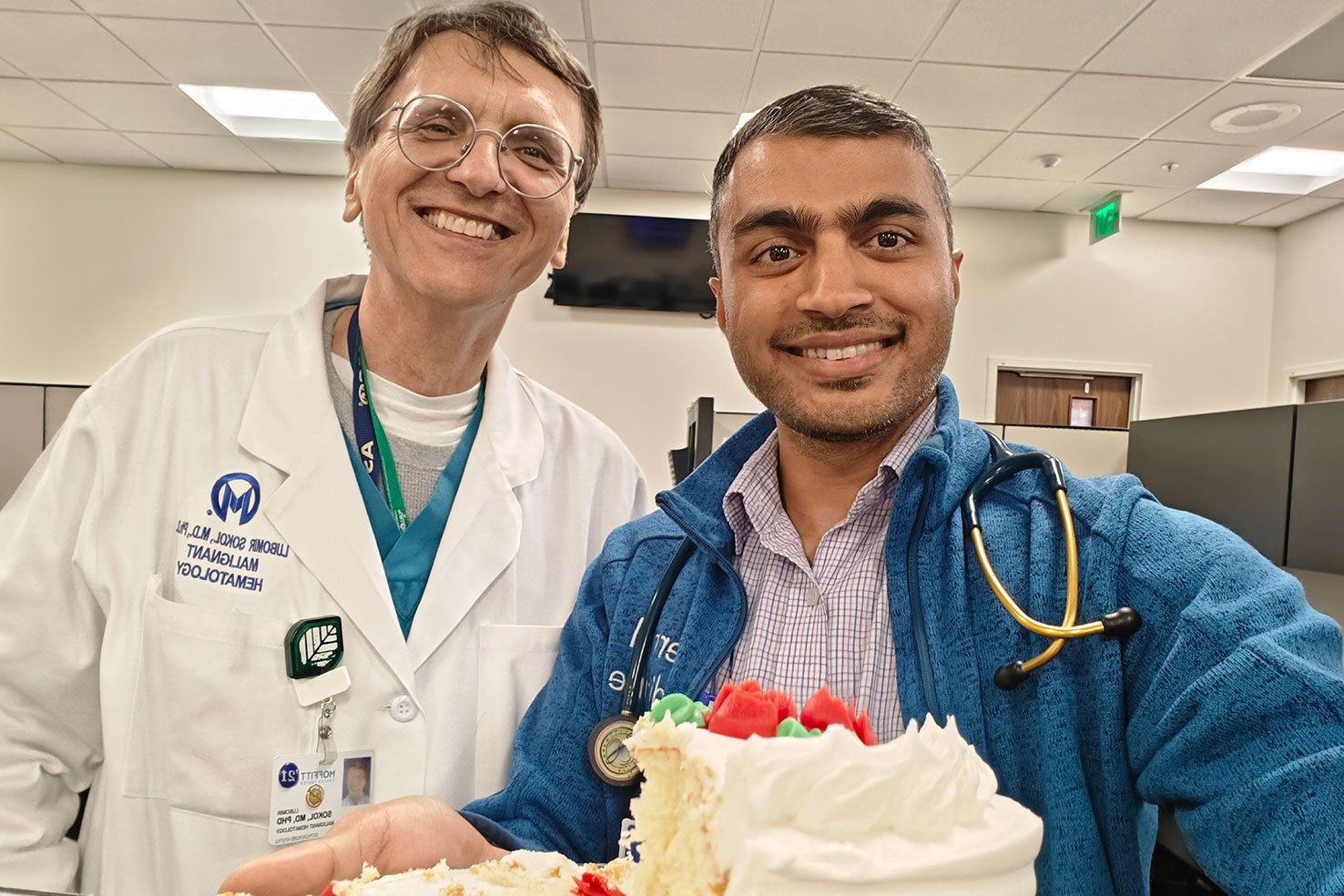 From left, Program Director Dr. Lubomir Sokol, GME Program Administrator Martin Kramer and Associate Program Director Dr. Michael Jaglal play a guessing game during a wellness event to see if they can guess the fellow based on the sound of their voice.