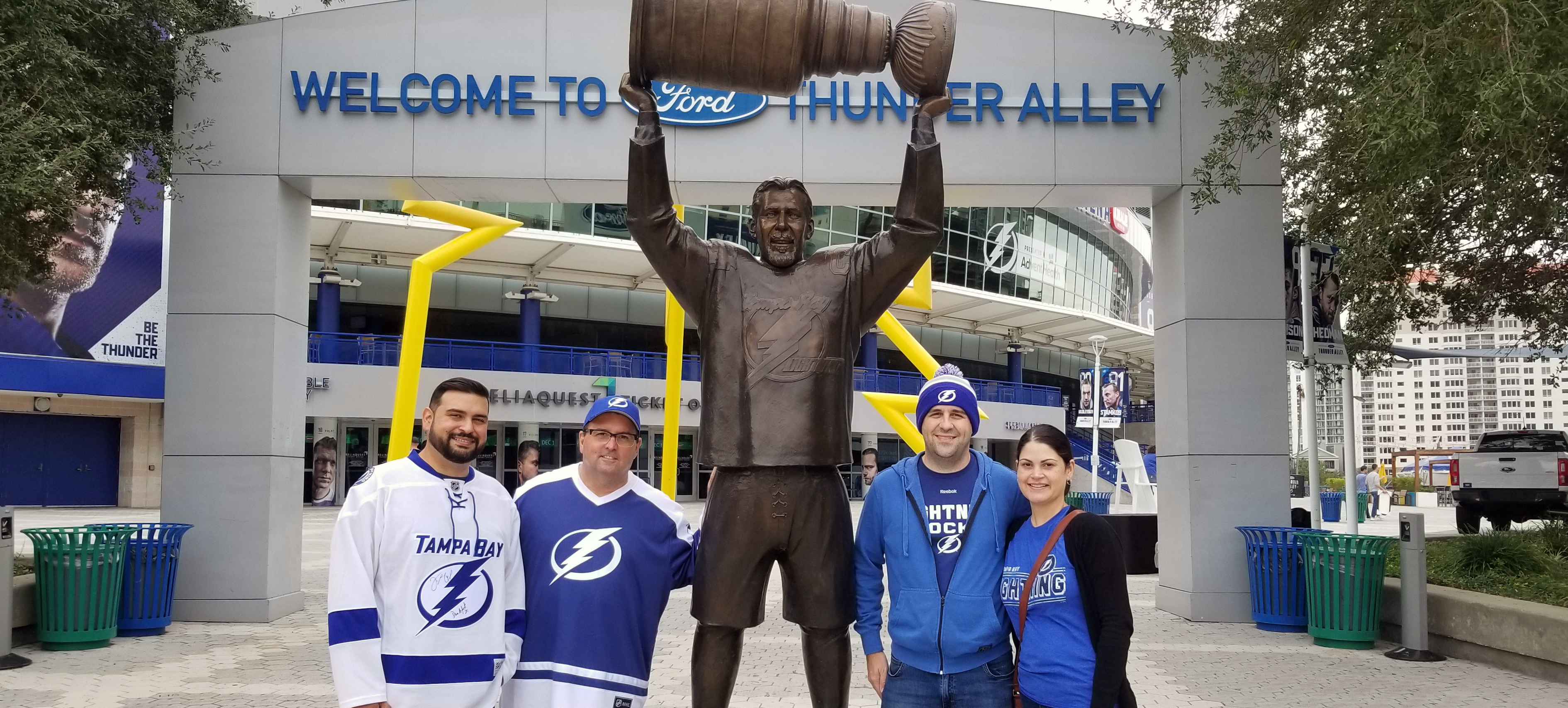 Jack McFarland and his family with NHL hall-of-famer Dave Andreychuk inside Amalie Arena.