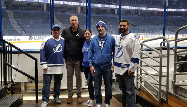 Over breakfast with National Hockey League (NHL) hall-of-famer and Tampa Bay Lightning alum Dave Andreychuk, Jack McFarland—a longtime Miles for Moffitt supporter—explains how he got involved with fundraising for Moffitt Cancer Center. Years ago, McFarland had a co-worker who battled cancer and was a patient at Moffitt. He watched her fight the terrible disease and saw how quickly the disease consumed his colleague’s health. But he was impressed with the treatment and care she received from Moffitt. “She always spoke highly of the cancer center,” McFarland recalls. Unfortunately, she lost her battle with cancer. “The first Miles for Moffitt race I participated in several years ago was in her memory. I am a big Rays fan, so I joined Evan Longoria’s team that year,” said McFarland. But as McFarland got to know Moffitt better and heard more stories about people’s experiences with the cancer center, he decided to make Moffitt his number one priority when it came to charitable giving.