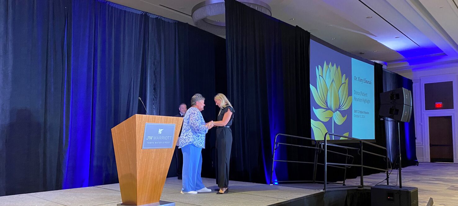 Seiders and McManus meet for the first time on stage at the BMT CI Patient Reunion.