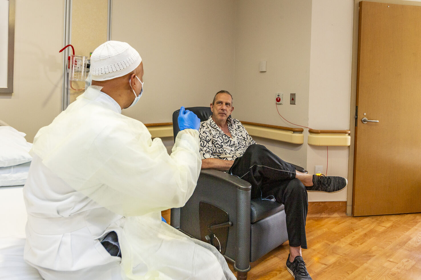 The Malignant Hematology team consulted the Blood and Marrow Transplant and Cellular Immunotherapy team. His BMT providers recommended a novel clinical trial using a sophisticated way of treating his acute myeloid leukemia with stem cell transplantation, according to Sayeef Mirza, MD, of Moffitt’s Department of Blood and Marrow Transplant and Cellular Immunotherapy. As his primary BMT hematologist, Mirza worked with Taiga Nishihori, MD, who is Moffitt’s site lead investigator, to get Barich enrolled on this trial.