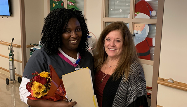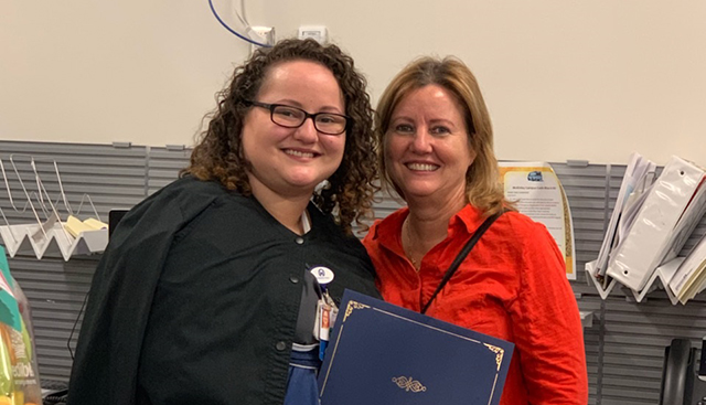 Victoria Horning (Left), Oncology Tech, 5 North - Sunflower Award Recipient