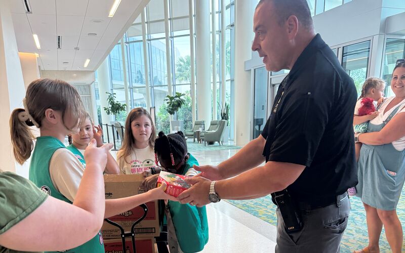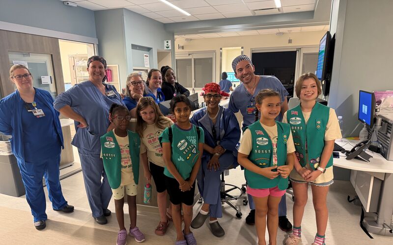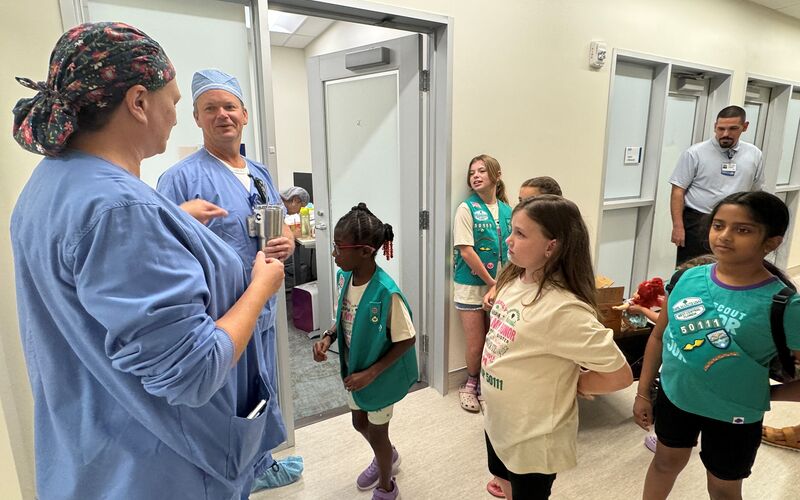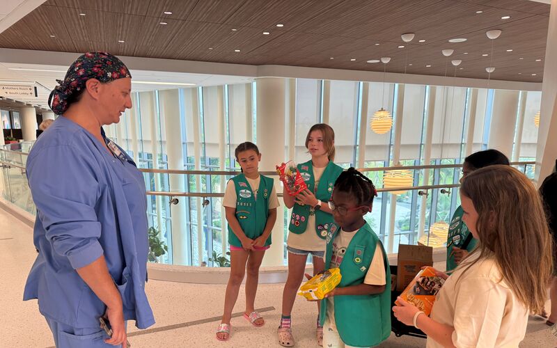 In their ongoing commitment to community service, five Girl Scouts from Land O’ Lakes Troop 50111 recently walked through the operating room floor at Moffitt McKinley Hospital to say thank you to health care workers. The future leaders handed out cookies as a gesture of appreciation for their dedication and service. The group also got a behind-the-scenes tour of the cancer center during their visit.