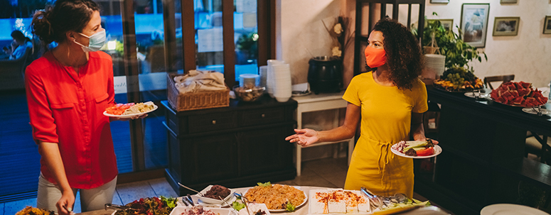 Although there has been no evidence to date claiming that handling or eating food is associated with spreading COVID-19, it can be contracted by touching objects or surfaces. Take care to limit the risks while preparing and serving holiday meals.
