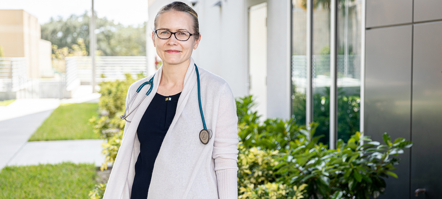 Olga Klinkova, M.D., M.S., is an assistant member in the Department of Internal and Hospital Medicine at Moffitt. She is board-certified in infectious disease and internal medicine. Klinkova earned her medical degree at Omsk State Medical Academy in Russia. At the age of 24, she moved to the United States to join her husband and completed a master’s degree in molecular biology. She soon realized her passion is medicine and patient care, so while working on her master’s degree she completed the necessary medical certifications in the U.S. and finished a residency, then worked as a hospitalist for a few years before moving to Tampa, where she completed an infectious disease fellowship and joined Moffitt. She and her husband, also a medical doctor, are the proud parents of three girls.