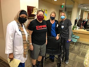 Throughout the treatment process, Poblete-Scaglione’s wife was within arm’s reach. Her workplace was accommodating which allowed her to take Poblete-Scaglione to appointments and work from home.