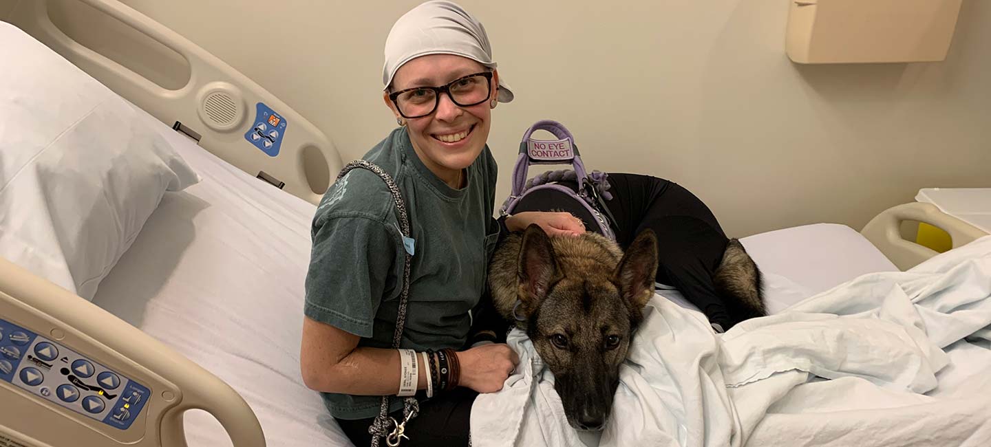 Tulsa’s mom Sydnee Geril, 25, is being treated at Moffitt Cancer Center for Ewing sarcoma. After undergoing therapy for nine months, Geril went into remission and adopted Tulsa with the hopes of training her to become a therapy dog.