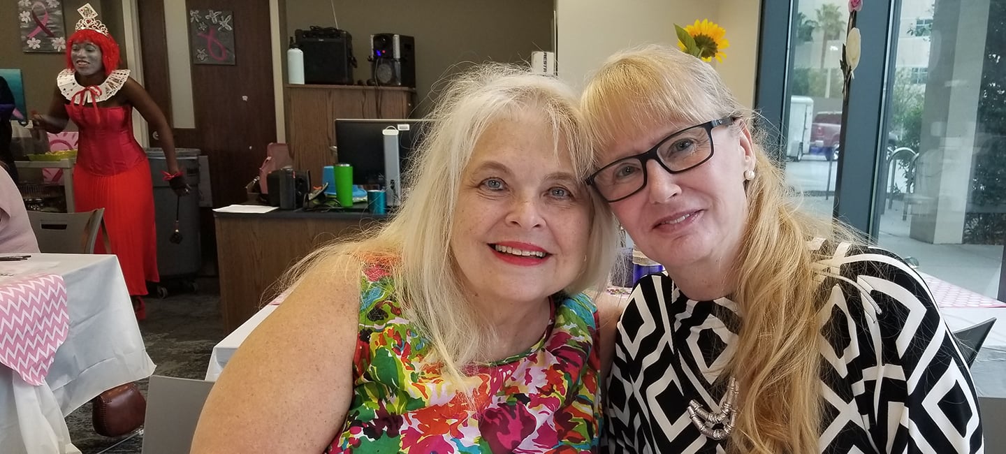 Patient Justine Pierre (Right) at Moffitt's Mad Hatter Tea Party event.