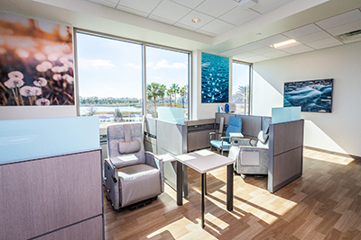 Moffitt at Wesley Chapel's lobby is designed to be a relaxing experience for patients seeking care.