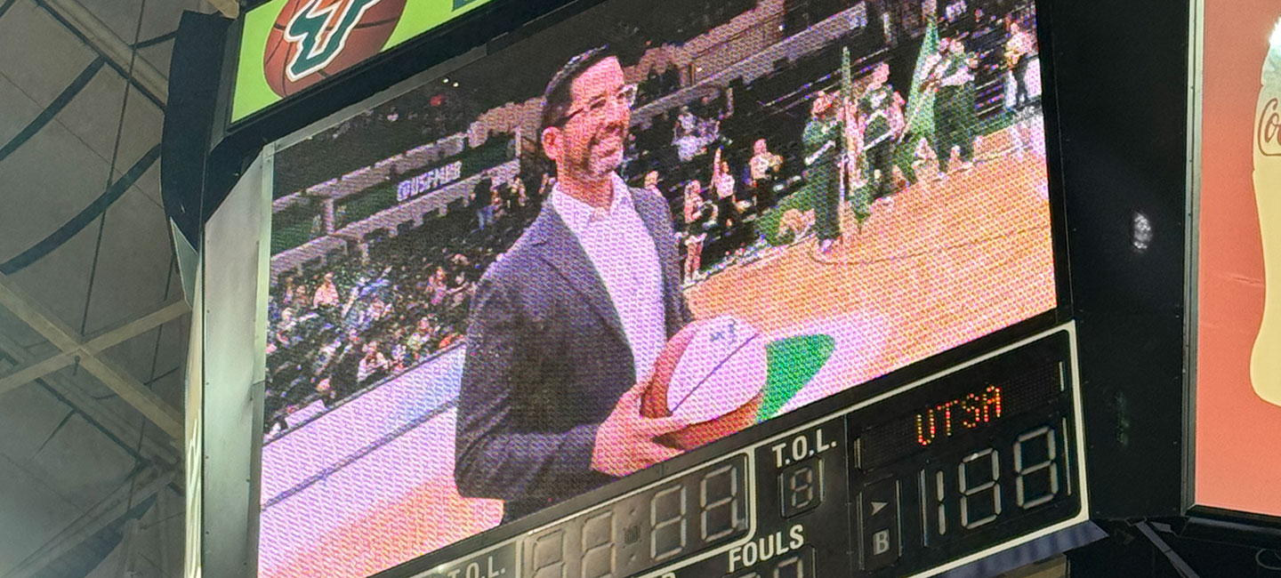The University of South Florida Bulls men’s basketball team took on the University of Texas at San Antonio Roadrunners on Saturday during the Coaches vs. Cancer game. The coaching staff donned suits and sneakers to show their support. The honorary game ball was presented to Dr. Brian Gonzalez, USF alumnus and associate center director of Research Diversity and Workforce Development at Moffitt Cancer Center. He earned his master’s and doctorate in clinical psychology at USF. The Bulls kept their win streak alive, defeating the Roadrunners 89-72. Horns up!
