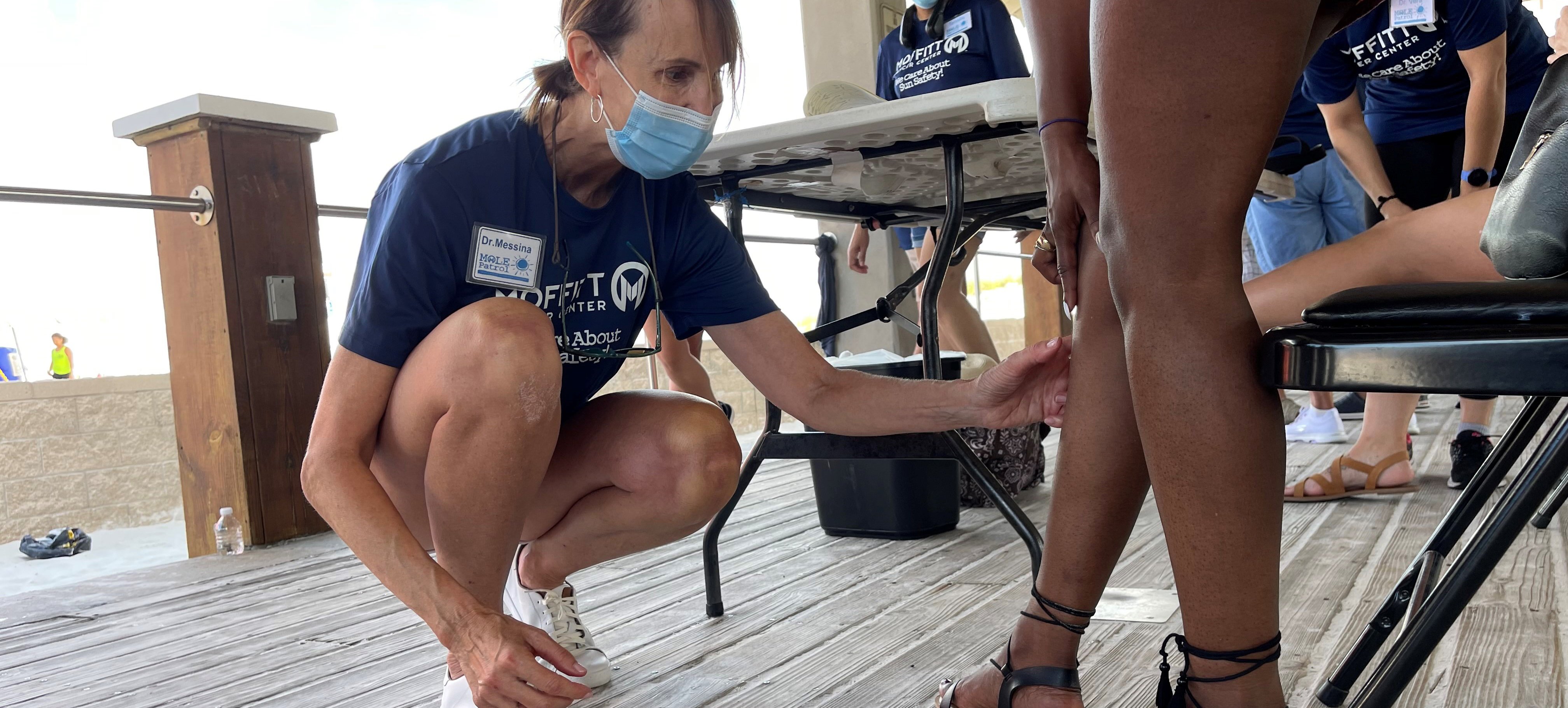 “It was three years ago here at the pier and he had a pigmented lesion on his back that was later diagnosed as a melanoma,” she said. “Screening at events like this is different than the work we do at Moffitt. On campus, patients know they have cancer, and they know why they are there. In this environment people are asking for help and it’s easier to break the news of the findings to them because we can encourage them to get help in the early stages of their diagnosis.”