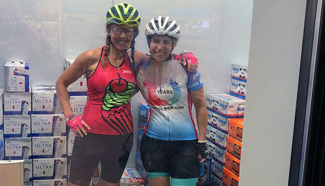 Angel Sexton and Sarah Garcia cooling off on day 2 of the 2020 Capitol Ride.