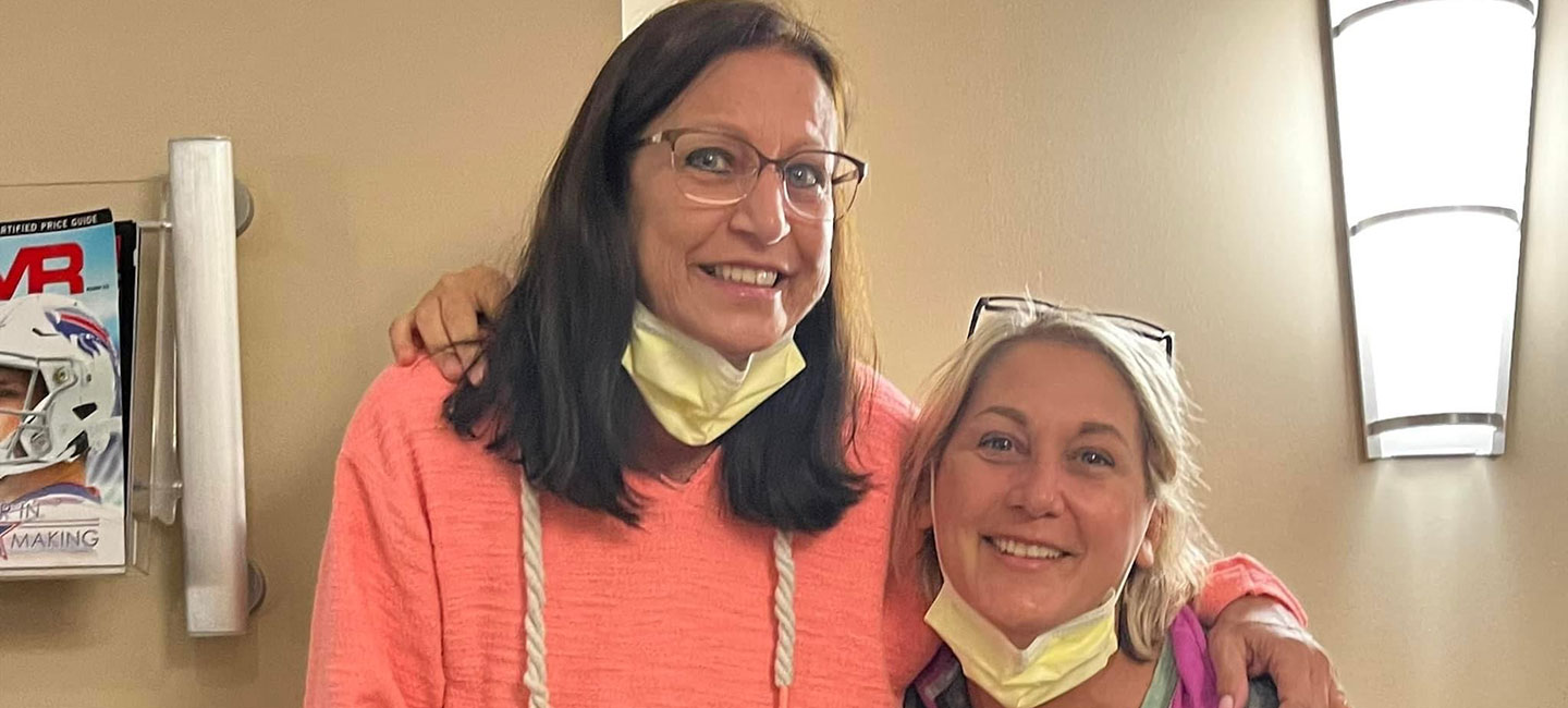 Robin Williams (left) and Marlene Grenier were able to see each other in the hospital the day after Grenier donated her kidney to her sister.