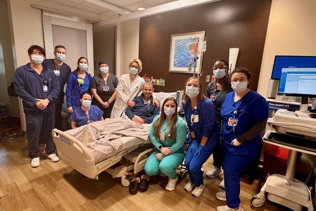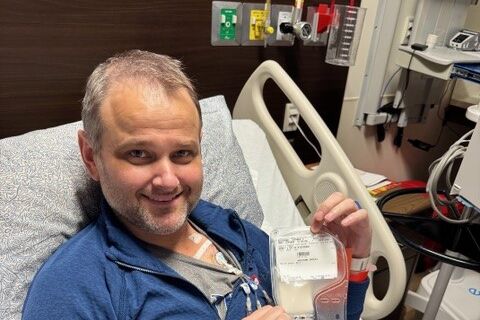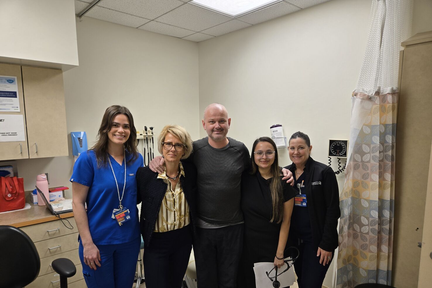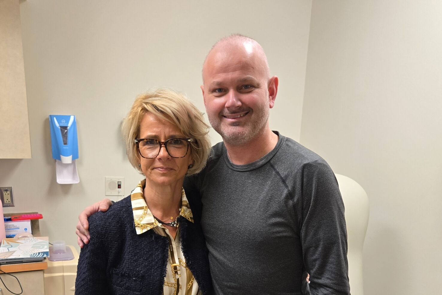 JP Malherbe, pictured with Dr. Mihaela Druta, received his infusion on Thanksgiving Day 2024.