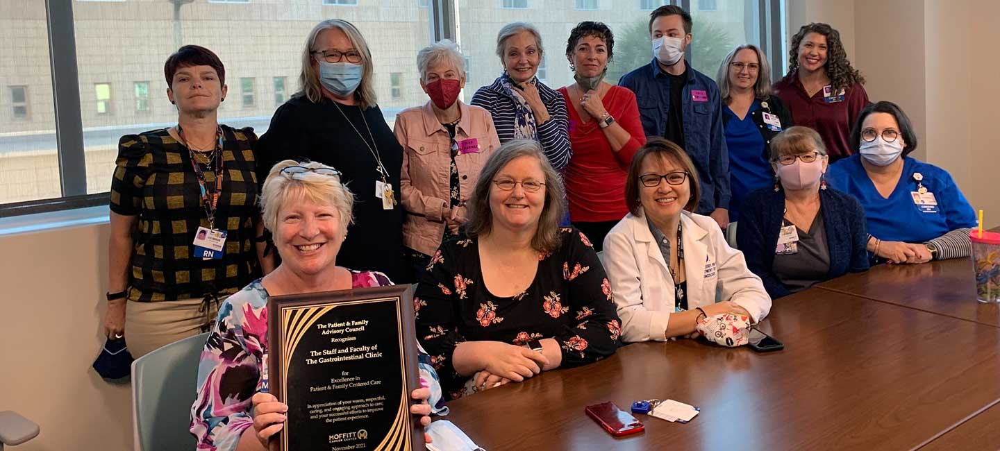The Patient and Family Advisory Council recognized numerous individuals from Moffitt’s Gastrointestinal Oncology Program — so many, in fact, that the council awarded the entire clinic the honor. They were recognized for their commitment to patient- and family-centered and compassionate care.