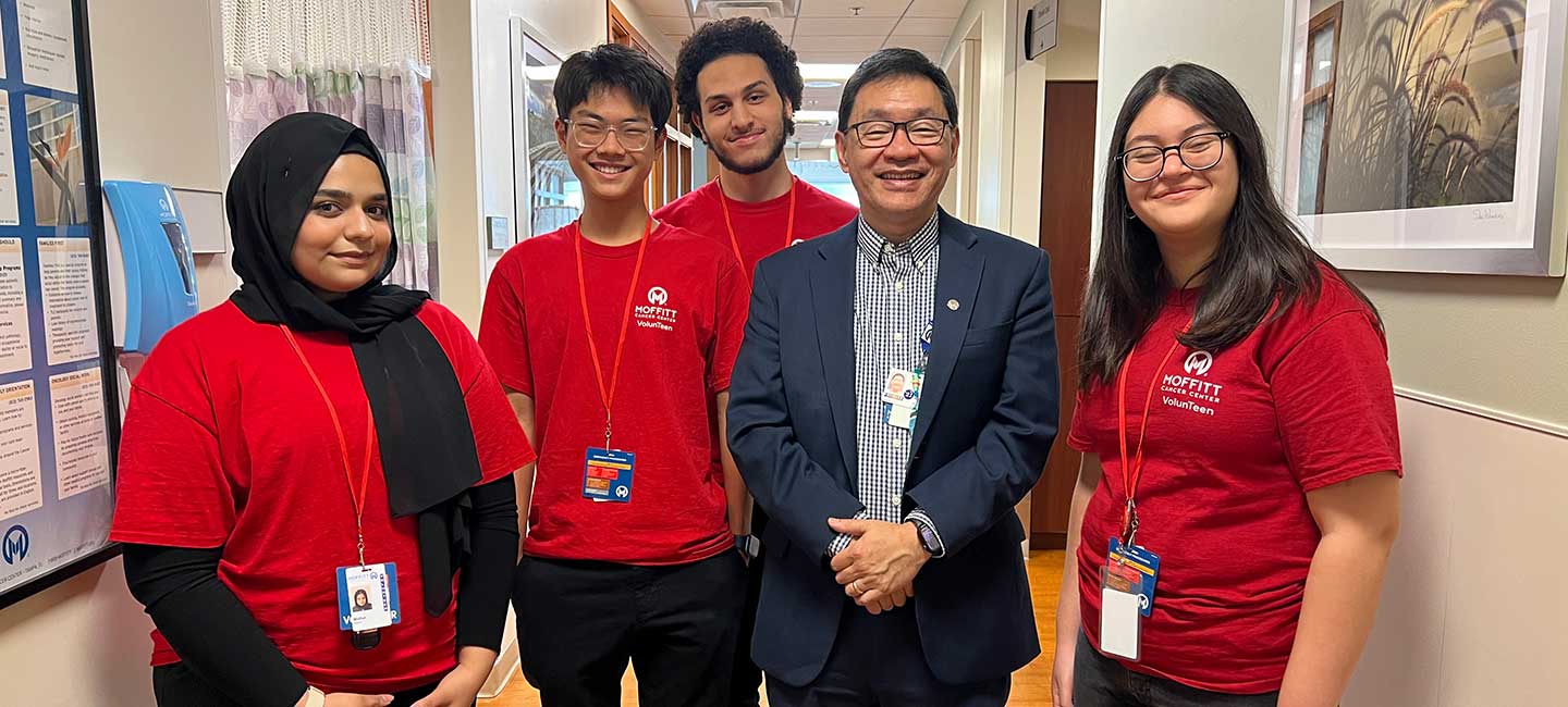 Each summer, two groups of high school students are accepted into Moffitt Cancer Center’s summer VolunTeen Program, which allows teens to get hands-on volunteer experience and learn about the inner workings of the center. This year, 103 teens are participating in the VolunTeen program, providing service to 33 departments across Moffitt including Transport, the Gift Shop, Urgent Care, Infusion, Radiation Therapy, Pharmacy and Interventional Radiology, as well as at the concierge and information desks. VolunTeens help with various tasks including providing comfort items to patients and families, escorting patients to clinics, running prescriptions, restocking items, assisting with wayfinding, filing, and preparing packets and educational materials.