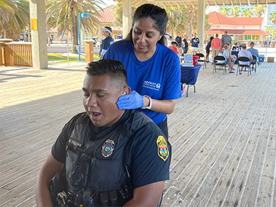 A Clearwater Beach police officer gets screened for head and neck cancer at Pier 60.