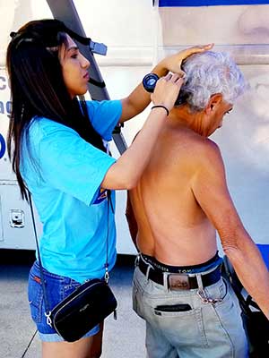 Mole Patrol physician performing a skin screening.