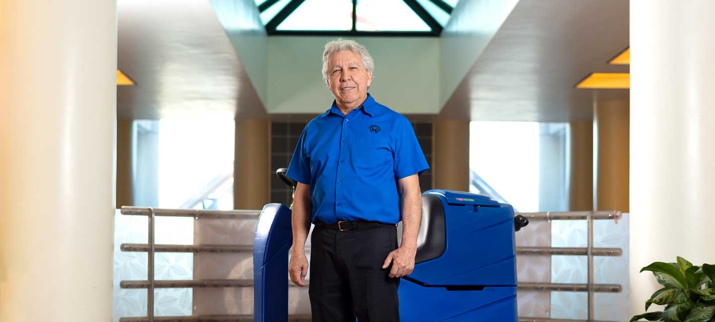 From Sunday through Thursday, Ancizar “Cesar” Bejarano-Bonilla spends his nights buffing the floors of Moffitt’s inpatient wings to a spotless shine. During his regularly scheduled breaks, he often trades the hum of the buffer for a sound more soothing to patients, families and fellow team members alike. You’ll find him in the hospital’s lobby, playing our grand piano.