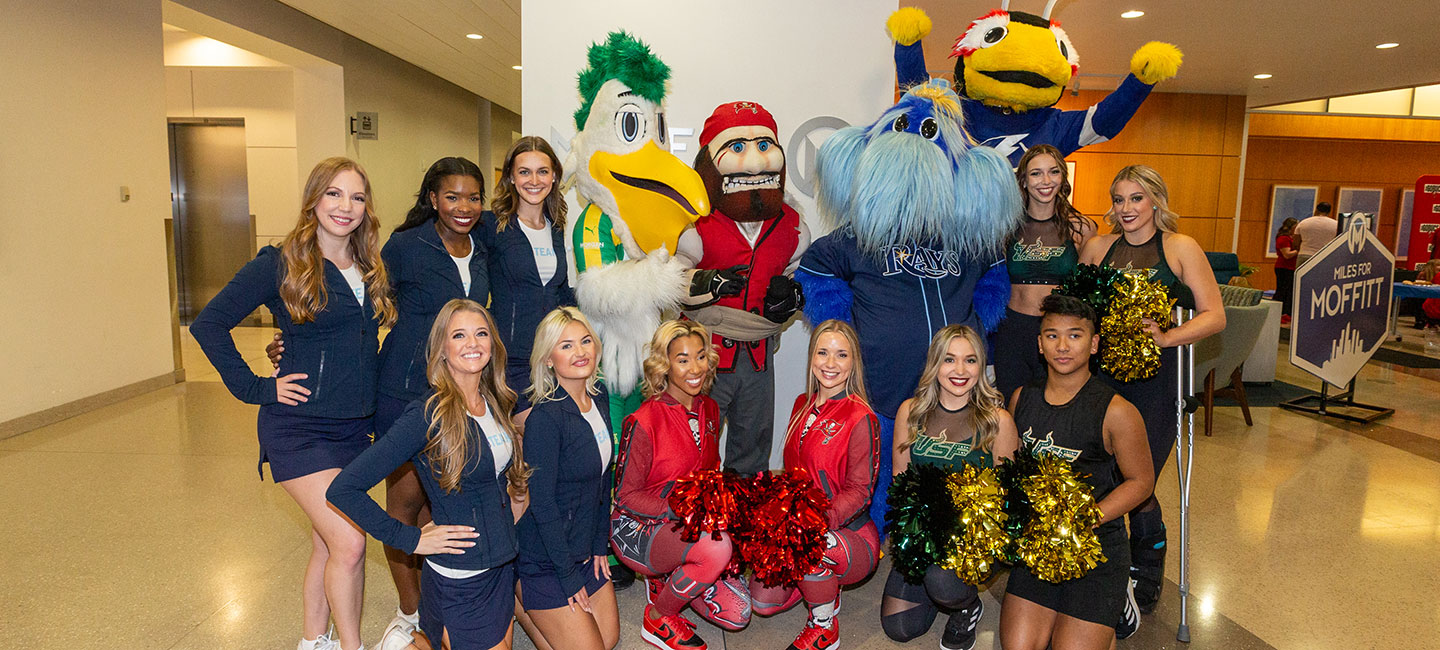 Despite representing the Tampa Bay Buccaneers, Tampa Bay Lightning, Tampa Bay Rays, Tampa Bay Rowdies and the University of South Florida Bulls, these cute characters and cheerleaders united for one day to spread cheer to patients at Moffitt.