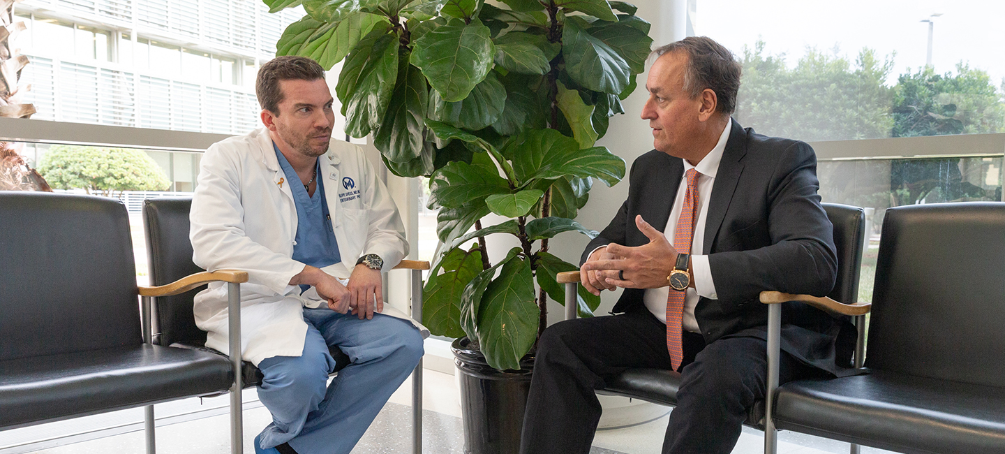 Wright ultimately decided to come to Moffitt to be near his home and not have to fly back and forth. He made an appointment at Moffitt, “and then somehow or another — thank God! — Dr. Spiess got ahold of me. I liked what he told me, and I also liked the plastic surgeon” [Gerard Mosiello, MD].