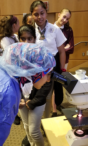 Another highlight of the day came from Joseph Johnson, analytic microscopy core facility manager in translational research. Johnson let the kids look at cancer cells under a high-powered microscope. Students described the experience as mind blowing.