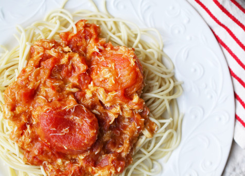 - Heat to a soft boil then reduce to simmer. Stir in garlic. Place on low heat and stir occasionally until ready to serve. Serve over spaghetti or linguine.